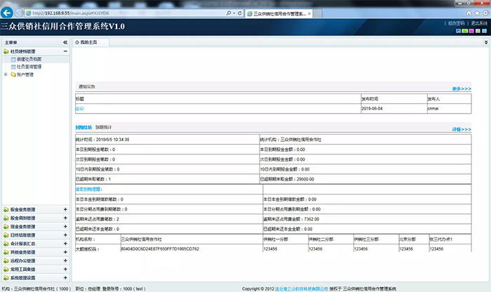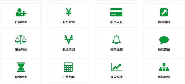 系统主要用于供销合作社,帮助供销合作社管理社员的日常股金业务往来,规范合作社的运营管理机制,使供销合作社更好的为社员服务,充分发挥供销社在农村资本市场的积极作用。
