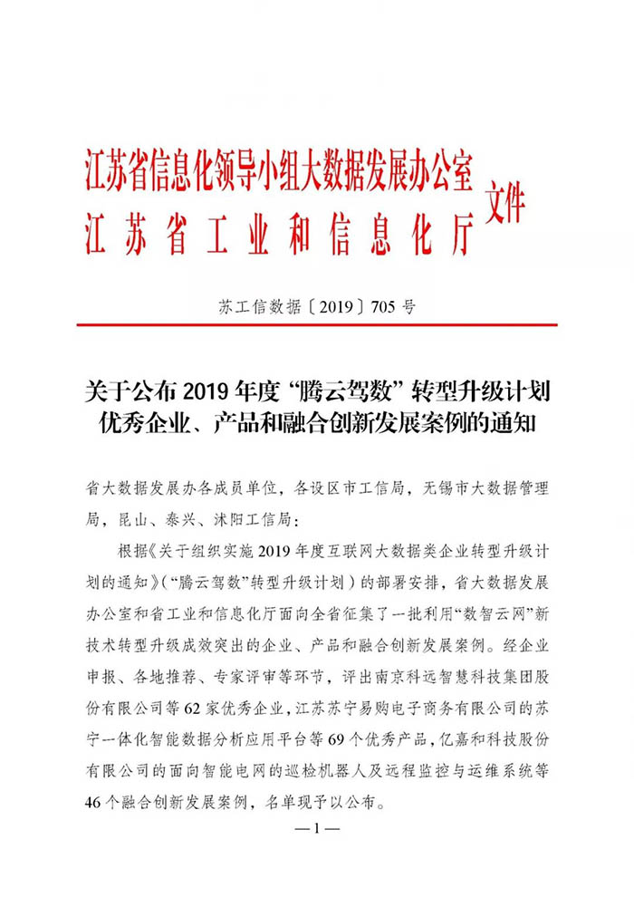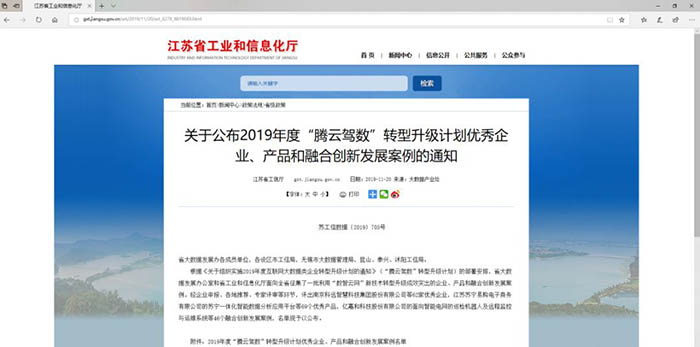 According to the "Notice on the 2019 Internet Big Data Class Enterprise Transformation and Upgrading Plan" (the "Tencent Cloud Internet" Transformation and Upgrading Plan), the provincial big data development office and the provincial industry and information department have organized a comprehensive evaluation of the province's enterprises, products, and integrated innovation development cases that have achieved outstanding results in the transformation and upgrading of the "Smart Cloud Network" new technology transformation and upgrading plan.