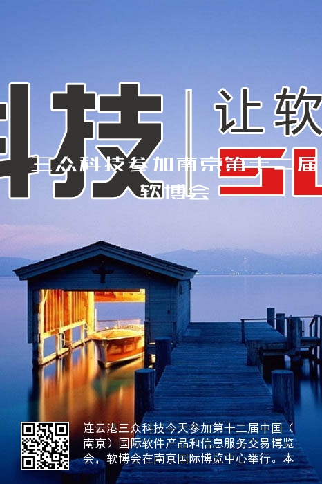 连云港三众科技今天参加第十二届中国(南京)国际软件产品和信息服务交易博览会,软博会在南京国际博览中心举行。本届软博会由江苏省人民政府主办,南京市人民政府、江苏省经济和信息化委员会、江苏省贸促会联合承办,将全方位展示国内重点软件城市和知名软件企业联盟的发展成果和成功经验,互联网与传统产业融合发展的新模式、新技术、新业态和应用成果,以及新一代信息技术、高端设备制造、新能源等重点领域的智能工业技术、应用成果和发展趋势。