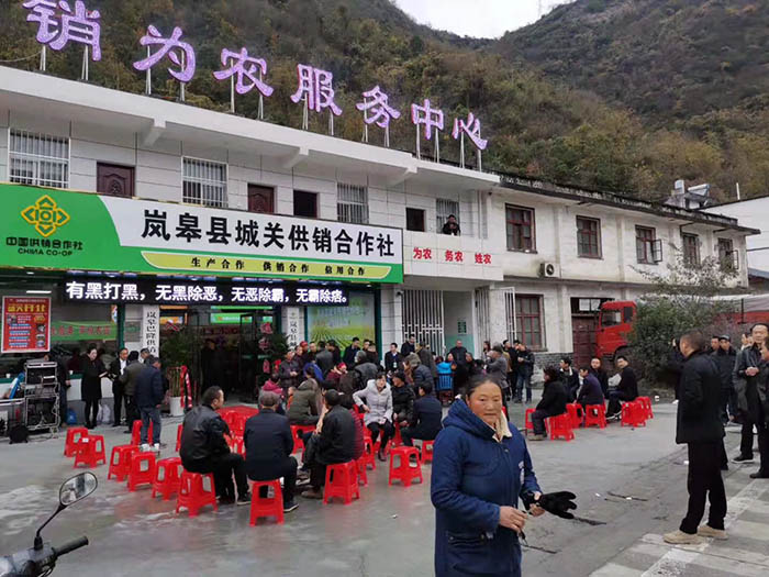 11月25日早晨,随着岚皋供销为农服务中心标志牌上的红绸布款款落下,岚皋县首家“三位一体”为农综合服务中心正式成立运营。供销为农服务中心运营后,将积极开展生产、供销、信用合作,为农民发展科学生产、农副产品销售、涉农企业和广大农民短期资金互助、扩展农生产环节和农副产品流通环节资金供应渠道提供有力保障。揭牌仪式上,还对10名年长的供销社员进行了表彰,安康永真肥料有限公司为供销合作社前一百名社员赠送有机肥10吨。